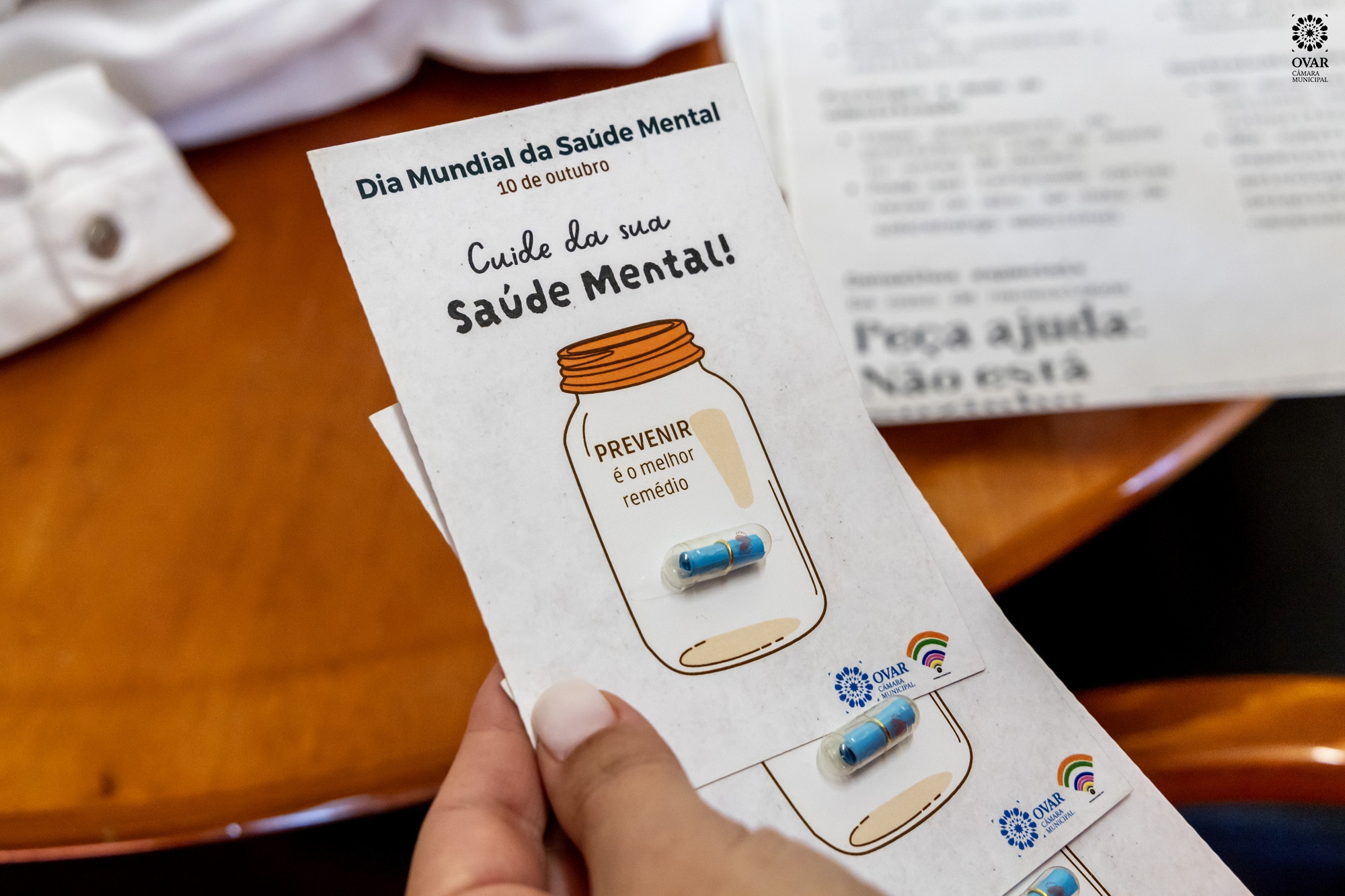 No Dia Mundial da Saúde Mental, assinalado a 10 de outubro, a Câmara Municipal de Ovar e o grupo de psicólogos em Rede | Ovar distribuíram um medicamento muito especial: 100mg de auto-cuidado para tomar diariamente. Em cada cartão uma mensagem para inspirar e sorrir e uma bula para seguir à regra. O gesto é simbólico e quis promover a literacia em saúde psicológica e o autocuidado. Desenvolvido em todas as freguesias do concelho, alcançou mais de 1000 munícipes.