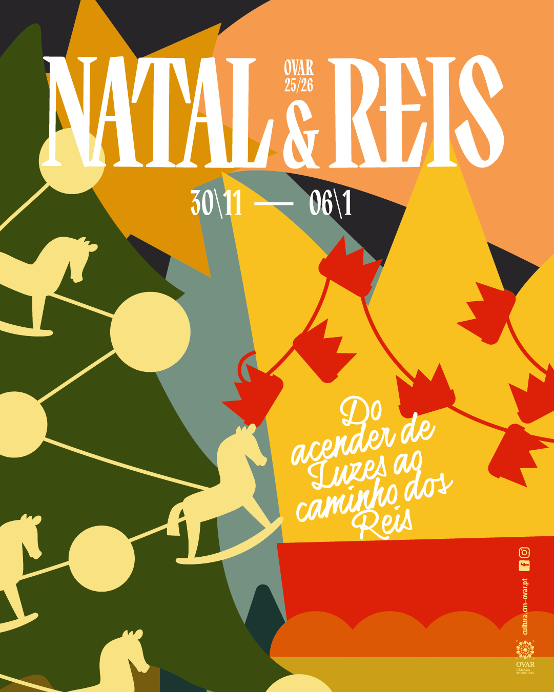 Do acender de luzes ao caminho dos Reis, Ovar é Natal. De 30 de novembro a 6 de janeiro, o Município de Ovar traz à rua o espírito desta quadra, com dezenas de iniciativas diferenciadoras, alicerçadas na identidade de um território que é tradição, património, sabores e hospitalidade. Com centenas de reiseiros que dão voz à tradição, o Cantar os Reis é um dos momentos mais ansiados, mas até lá, há tanto por viver. Espetáculos e música, oficinas criativas, visitas turísticas e muito mais. Para crianças, famílias e público em geral, Ovar será terra de encontro e magia. Uma cidade criativa e de tradições vivas, pronta para proporcionar momentos de partilha à comunidade e de braços abertos para receber.