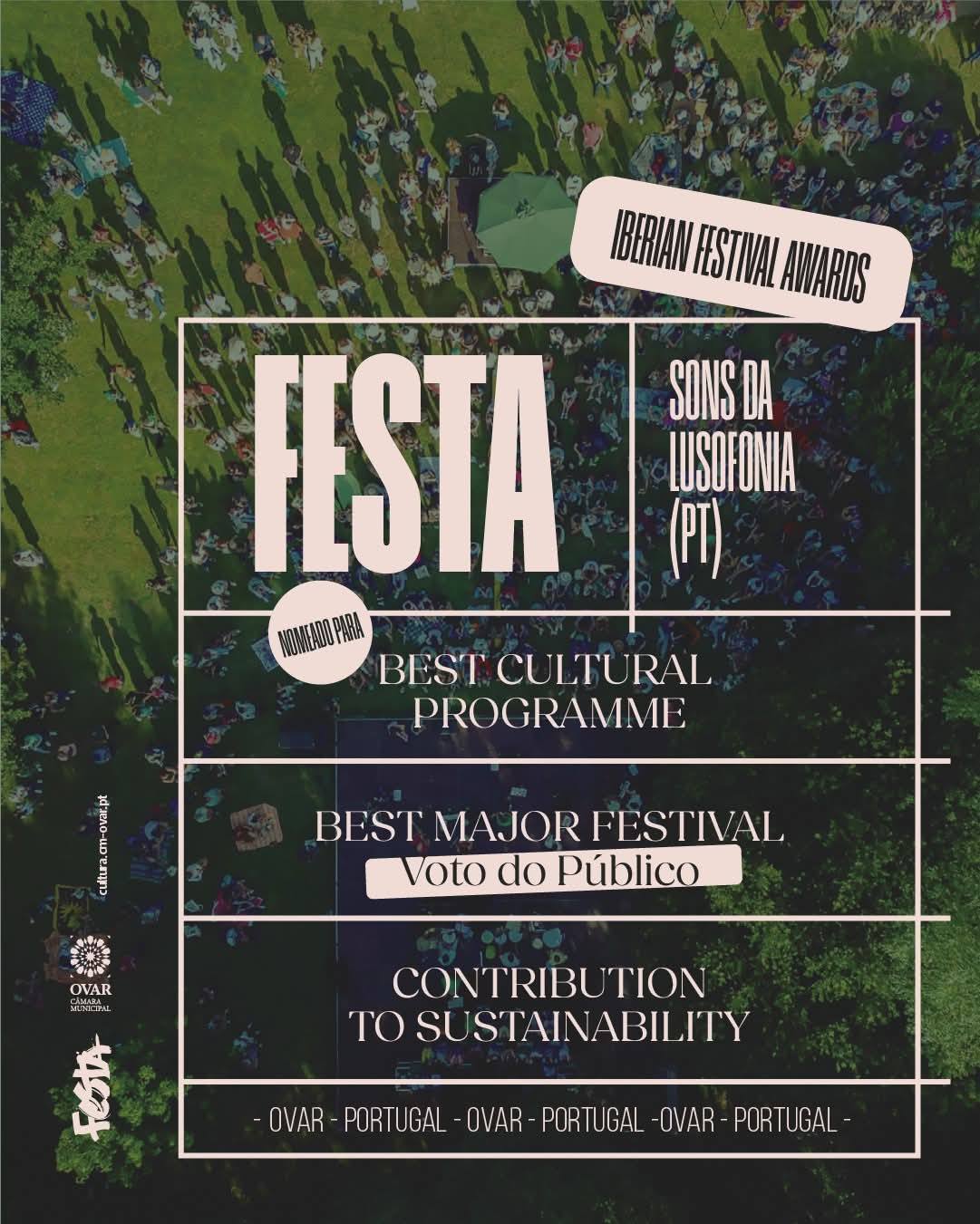 Os festivais FESTA – Sons da Lusofonia e OVAR EXPANDE, promovidos pela Câmara Municipal de Ovar, foram nomeados para um total de sete categorias na 10.ª edição dos Iberian Festival Awards, um dos mais relevantes reconhecimentos do setor dos festivais de música em Portugal e Espanha.